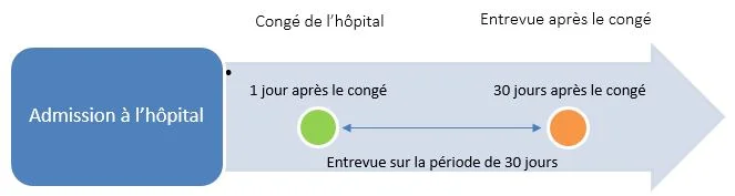 Patients that have been recruited into our study and that have given their consent for the follow-up, will be contacted within 30-35 days after discharge from an episode of hospitalization for the structured telephone interview. ..Les patients recrutés pour participer à notre étude et ayant donné leur consentement pour le suivi seront contactés dans un délai de 30 à 35 jours après leur congé de l’hôpital afin de passer une entrevue téléphonique structurée. ...
